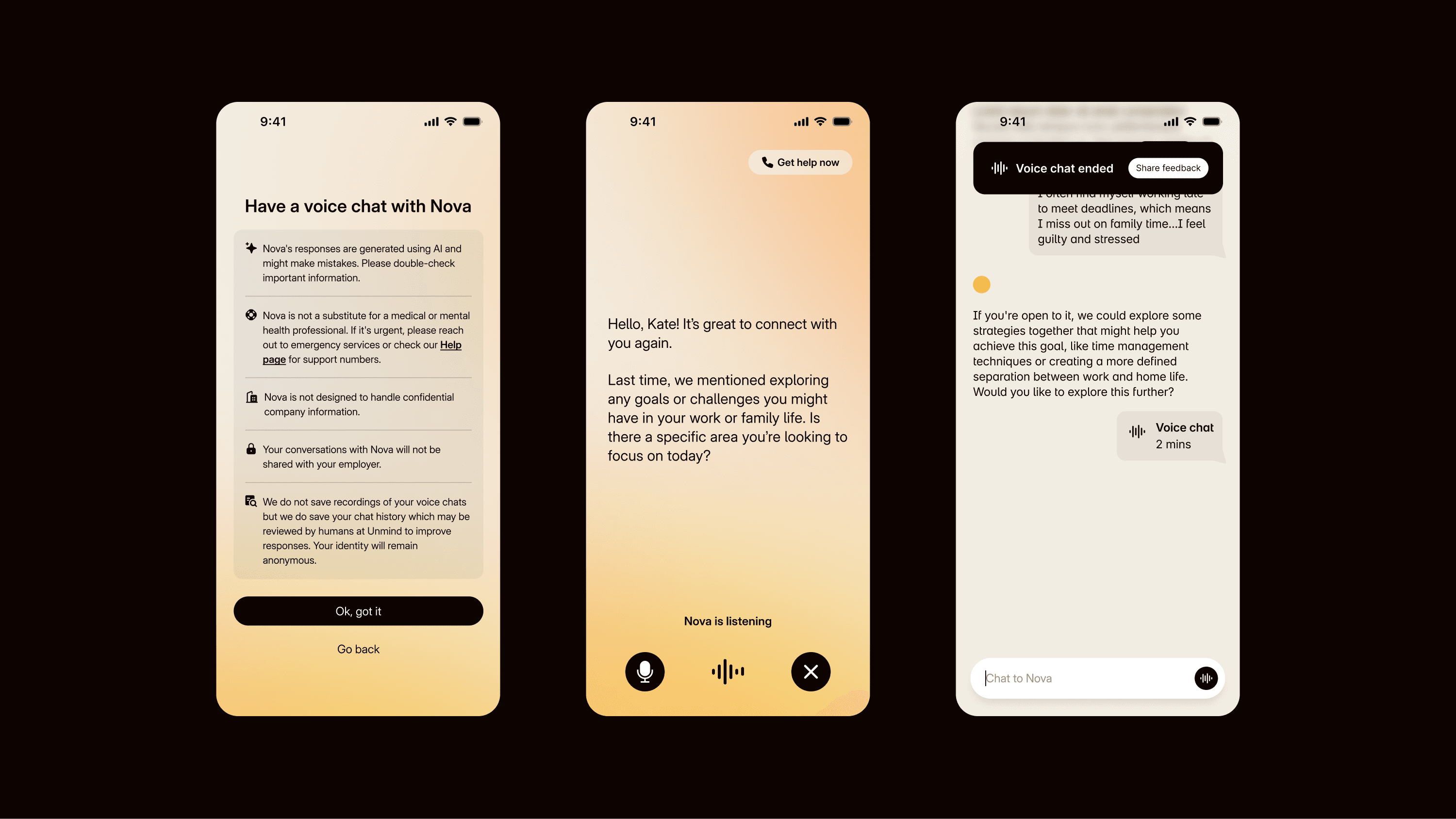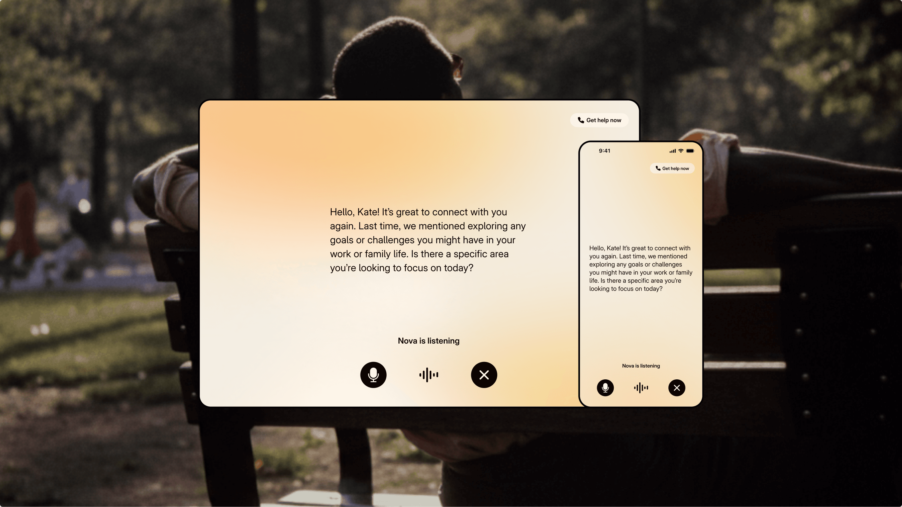Nova launched in 2023 as a text-based AI mental health coach. From day one, clients were asking for voice - it's a more natural way to talk through difficult moments, and people speak 3x faster than they type. But in mental health, voice presents extra risk. We needed to be cautious about safety, manage client concerns, and make sure we weren't just matching what people expected from common AI tools.
